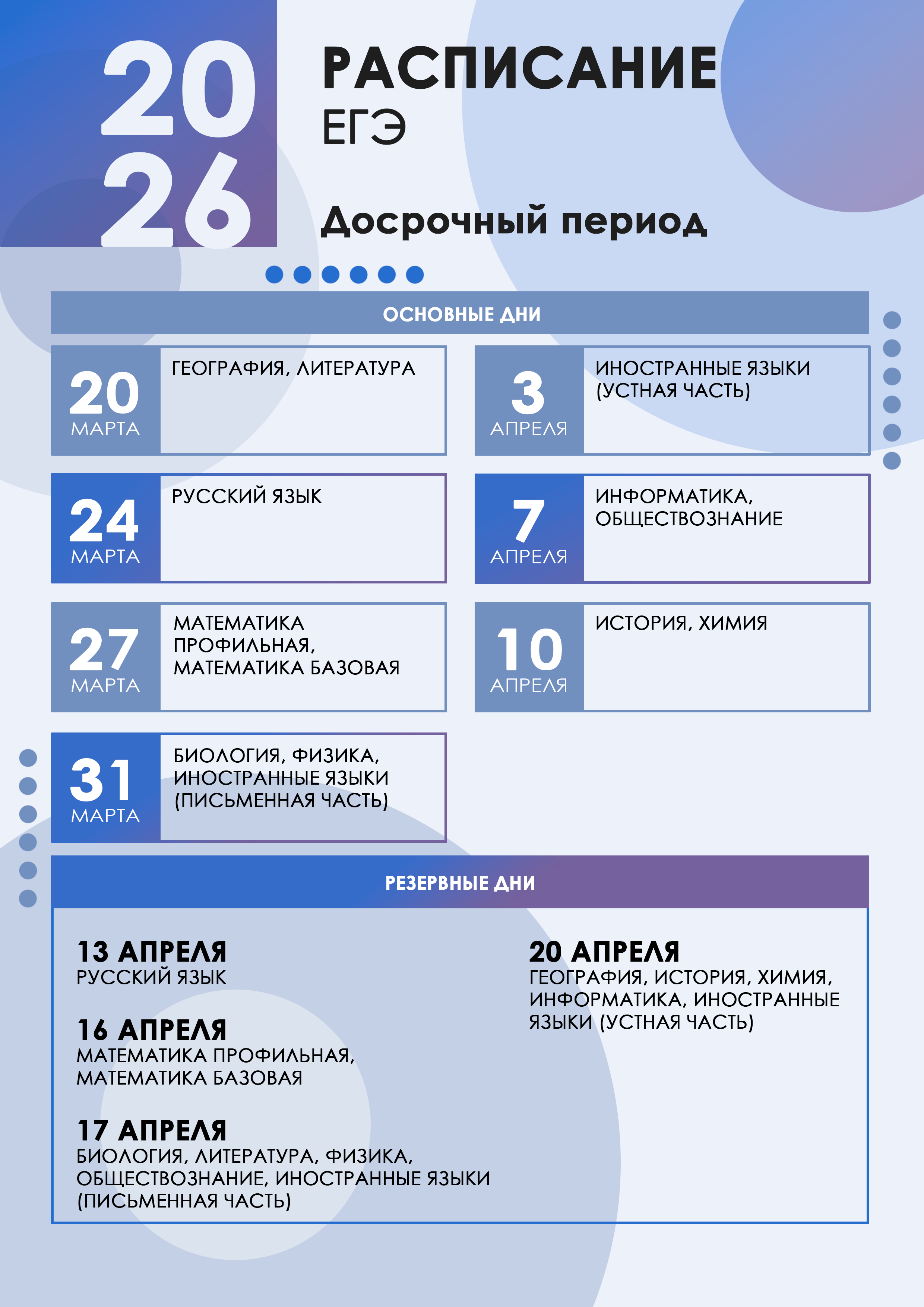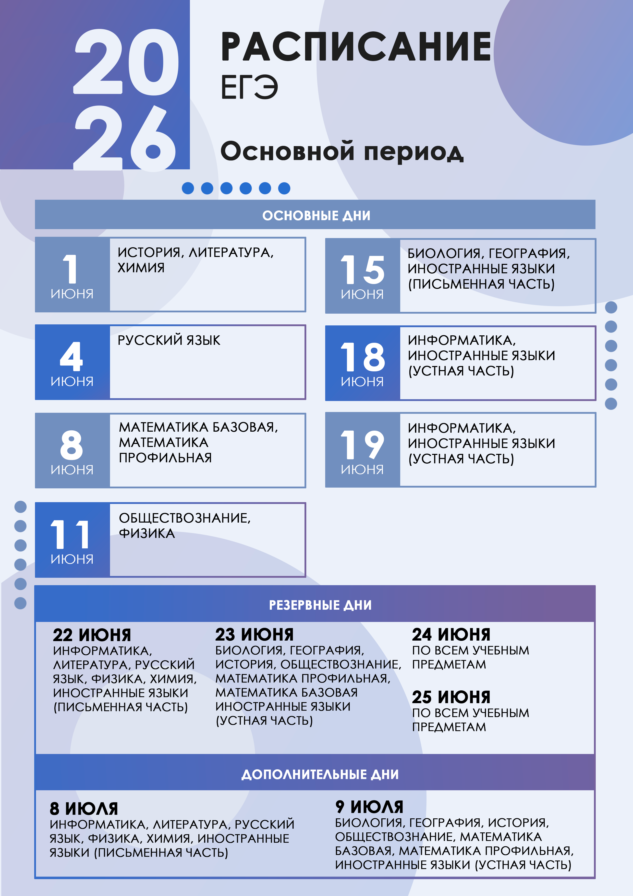 Расписание ЕГЭ в 2026 году. (см. здесь)