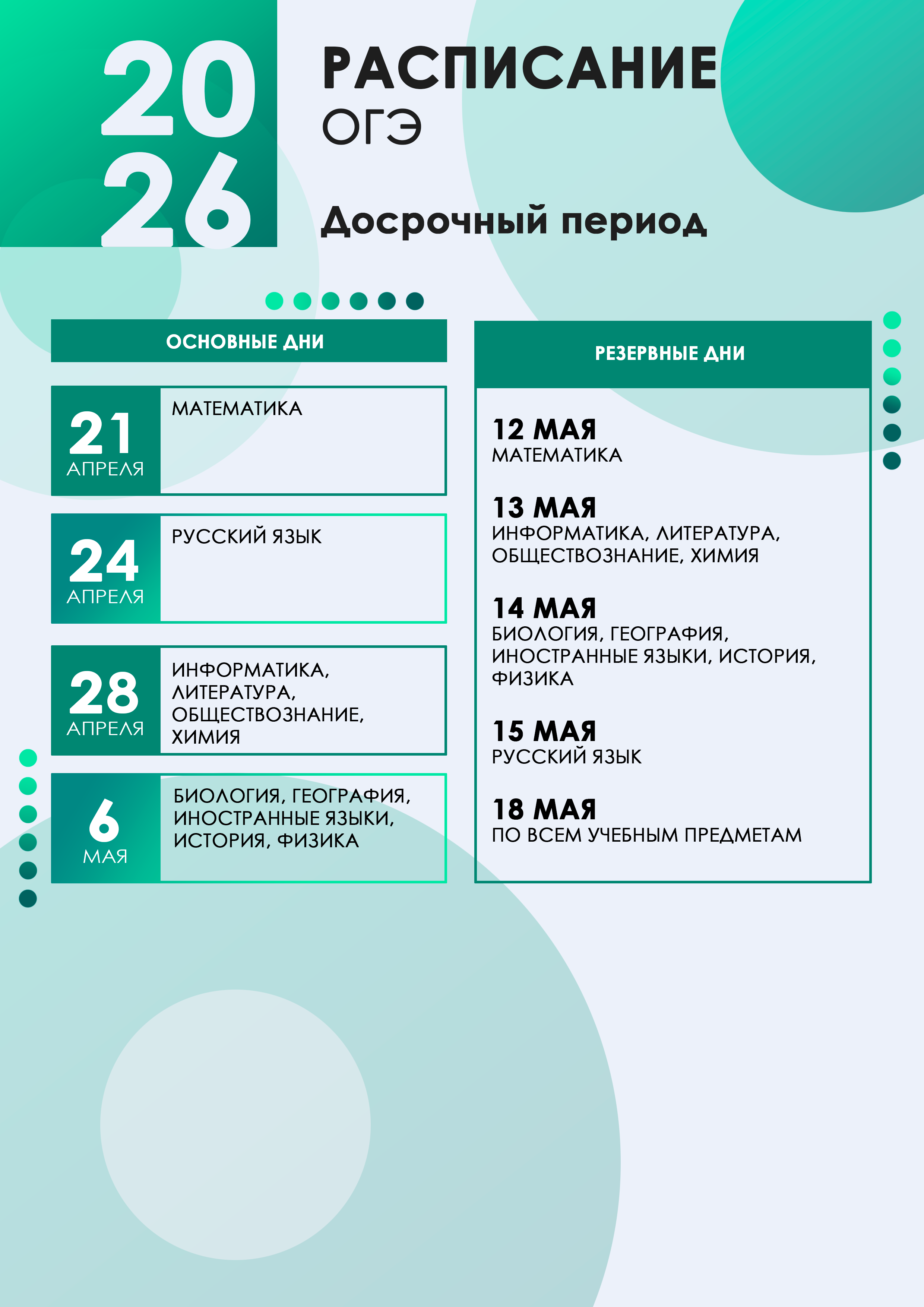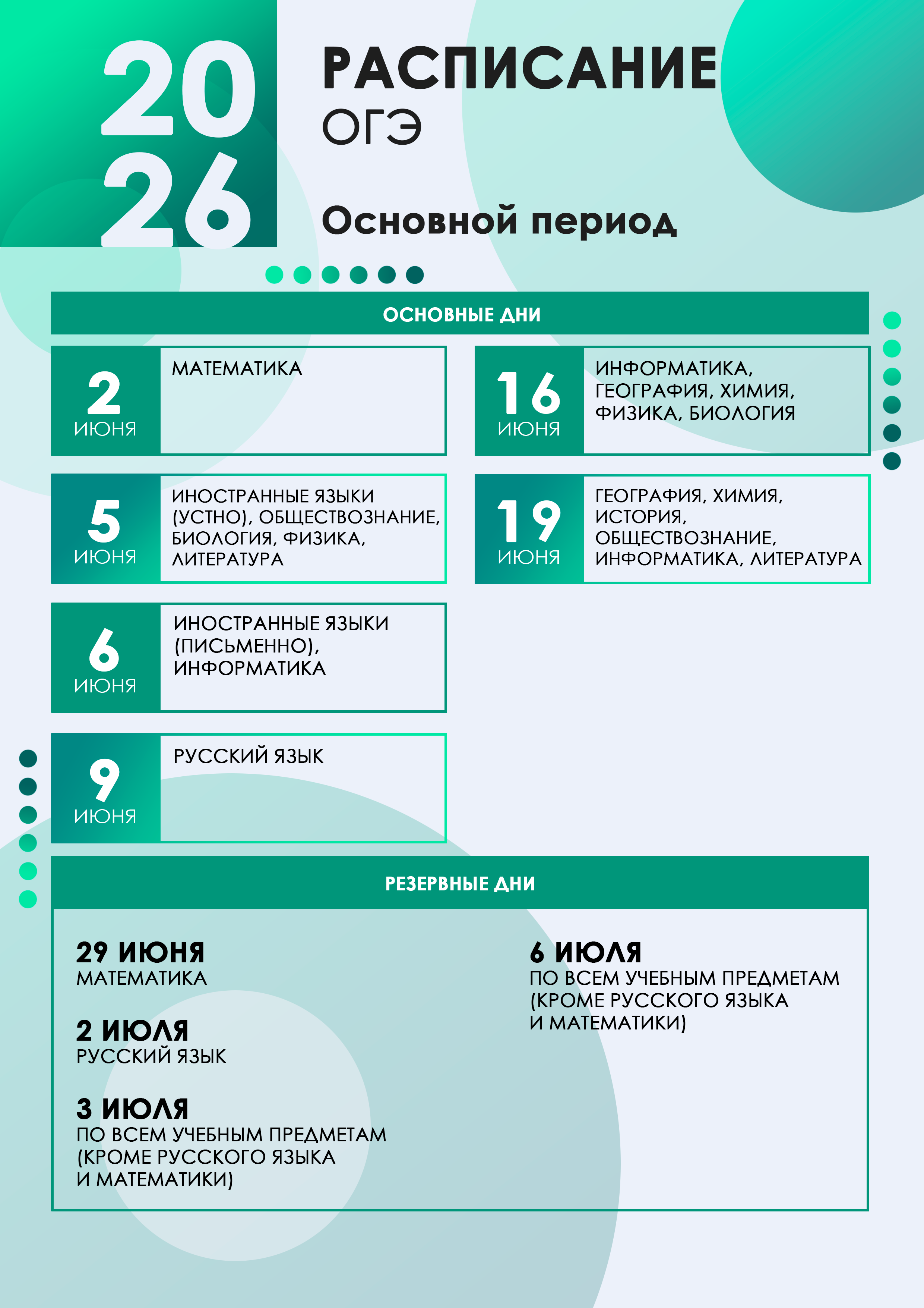 Расписание ОГЭ в 2026 году. (см. здесь)